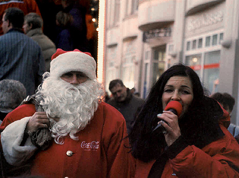 Santa Claus mit der Coca-Cola Weihnachtstour-Moderatorin