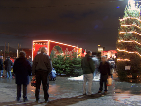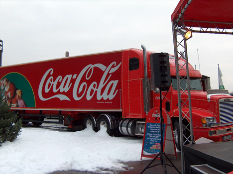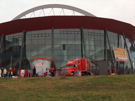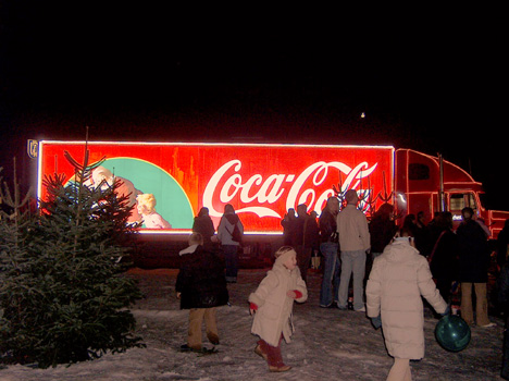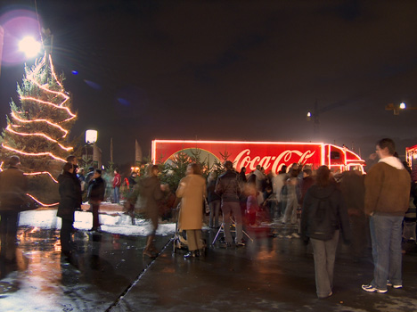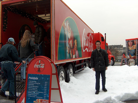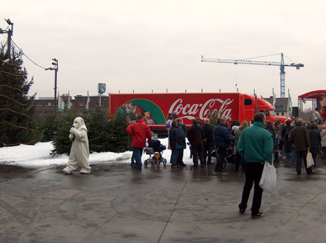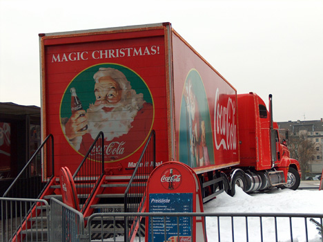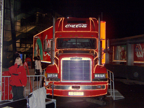 Der Coca-Cola Weihnachtstruck vor der Köln-Arena