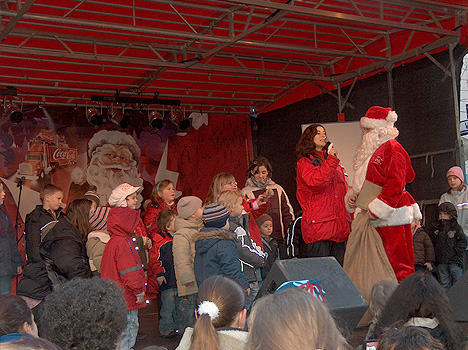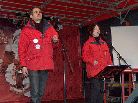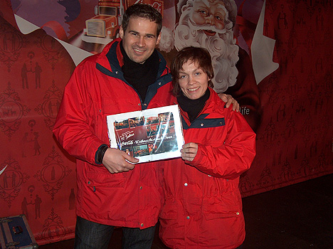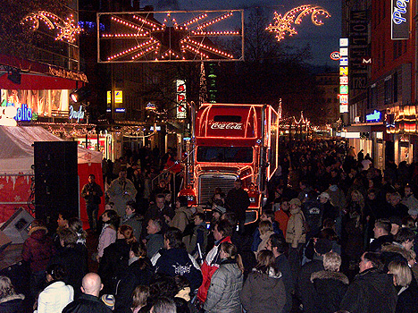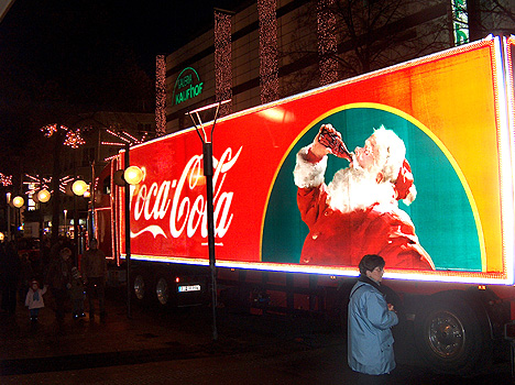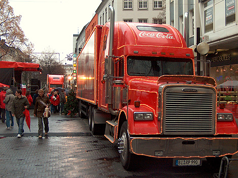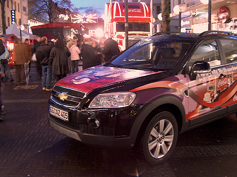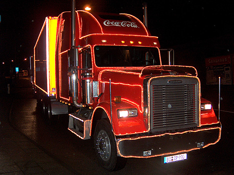 Ein Begleitfahrzeug vom Coca-Cola Weihnachtstour-Team