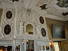 Während der Schlossführung konnte man auch die antiken und den barocken Gegen-ständen in den unter-schiedlichen Zimmern bestaunen. Diese gehören dem Schloss. Für die Studiodekoration der Serie sind extra gleiche Requisten und teueres Mobilar gekauft, bzw. ausgeliehen worden, wie die wertvollen gestalteten Tapetenmuster.