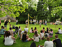 |  | Auch ein Vollyballlmatch im schattigen Schlossgarten, wo ausgewählten VL-Stars gegen Fan's der Serie spielten, war gut besucht. Dort hatten die Zuschauer die Möglichkeit die sportliche Seite der Seriendarsteller zu bestaunen.